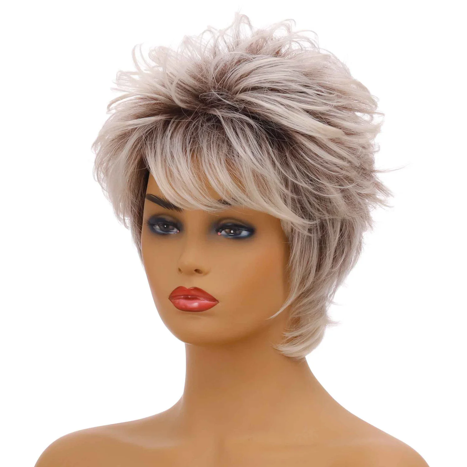Парики Для женщин синтетический парик, короткие кудрявые волосы с челкой натуральный светильник золотисто-коричневого парики на каждый день Применение термостойкие парики волокна