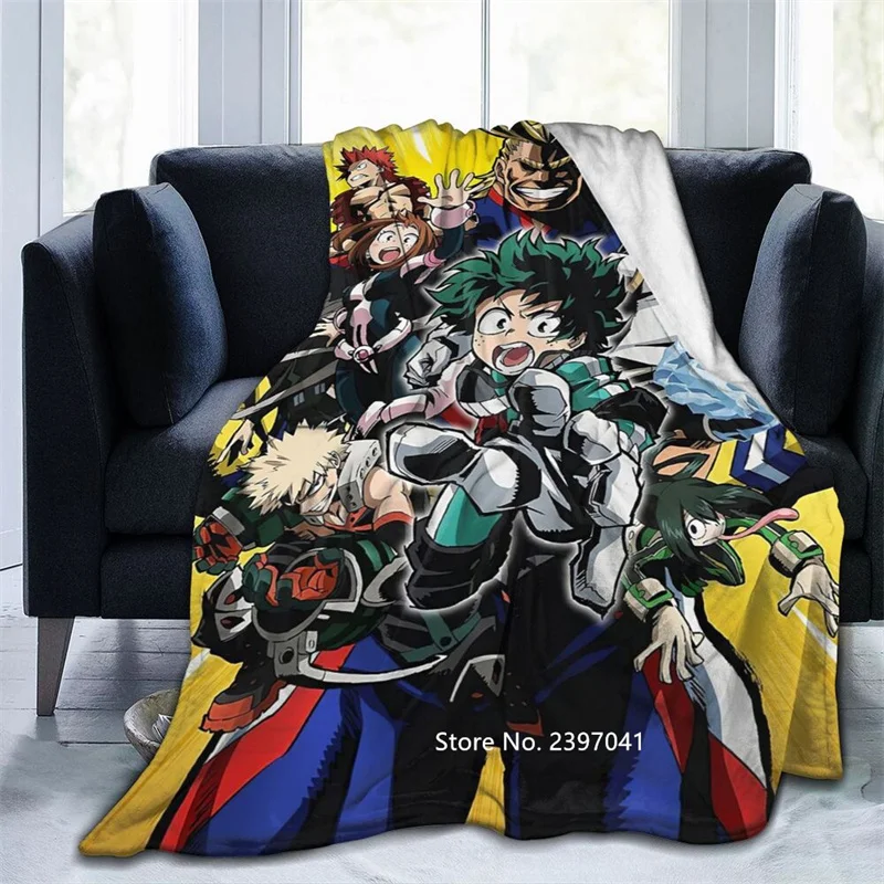 Флисовое одеяло с коллажем из аниме Моя геройская Академия-манга, пушистые теплые Пледы для зимнего постельного белья, кушетки и плюшевого домика