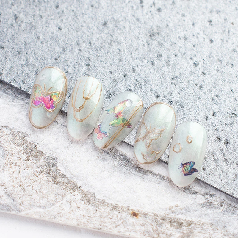 1 шт. голографические 3D наклейки-бабочки для дизайна ногтей клейкие слайдеры Красочные золотые переводные наклейки для ногтей сделай сам Фольга Обертывания украшения