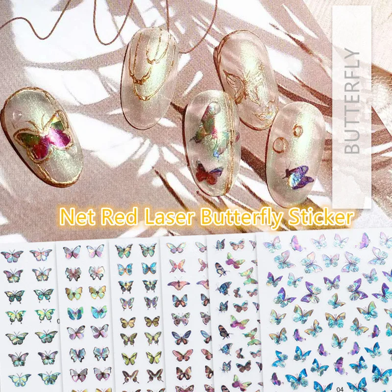 1 шт. голографические 3D наклейки с бабочками для дизайна ногтей клейкие слайдеры красочные DIY золотые переводные наклейки для ногтей фольги Обертывания украшения