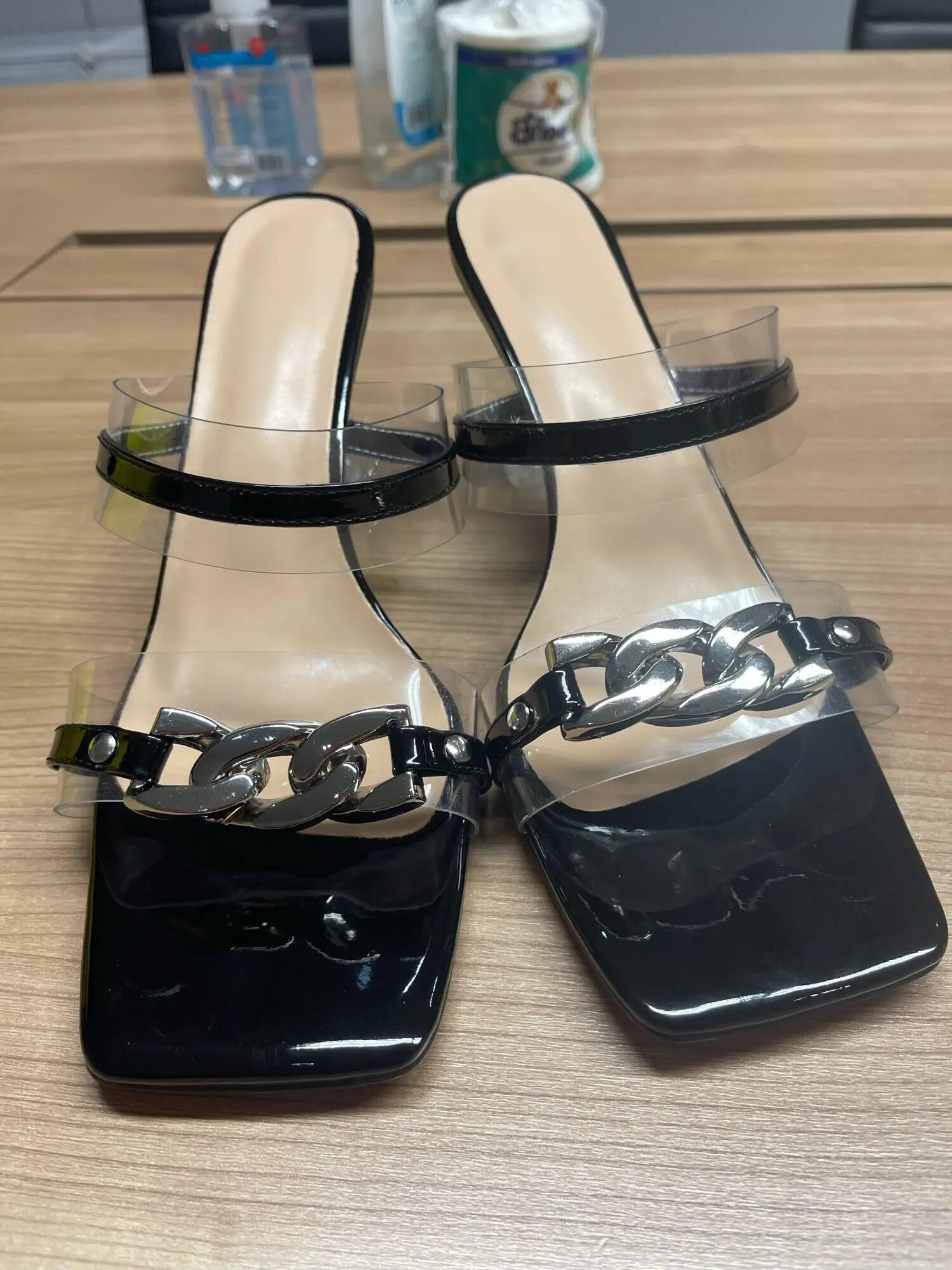 Шлепанцы Onlymaker, летние, с квадратным носком, прозрачные, металл...