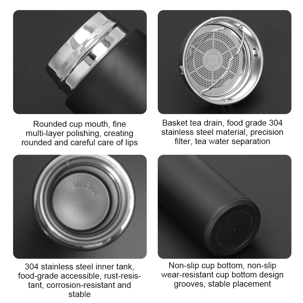 Умная чашка для воды, 500 мл, 304, нержавеющая сталь, светодиодная Вакуумная чашка, термос, портативный цифровой дисплей, бутылка для воды, деловой подарок
