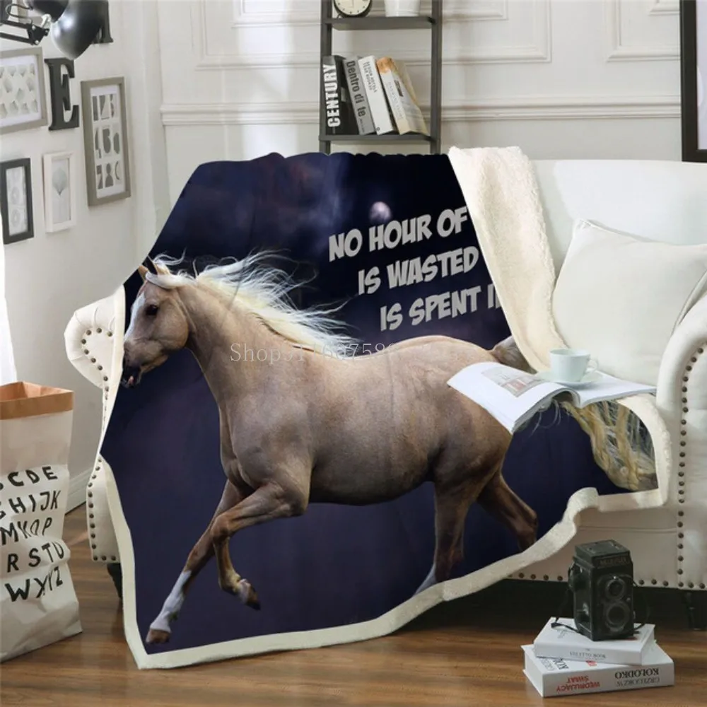 Флисовое одеяло с 3D-принтом "бегущая лошадь", для кровати, плотное...