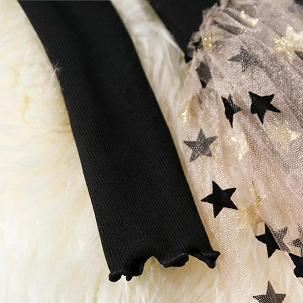 Платье для маленьких девочек с длинными рукавами, оборками, блестками и принтом звезд, платье из тюля, Повседневная Свободная одежда, детское платье трапециевидного силуэта, платье принцессы