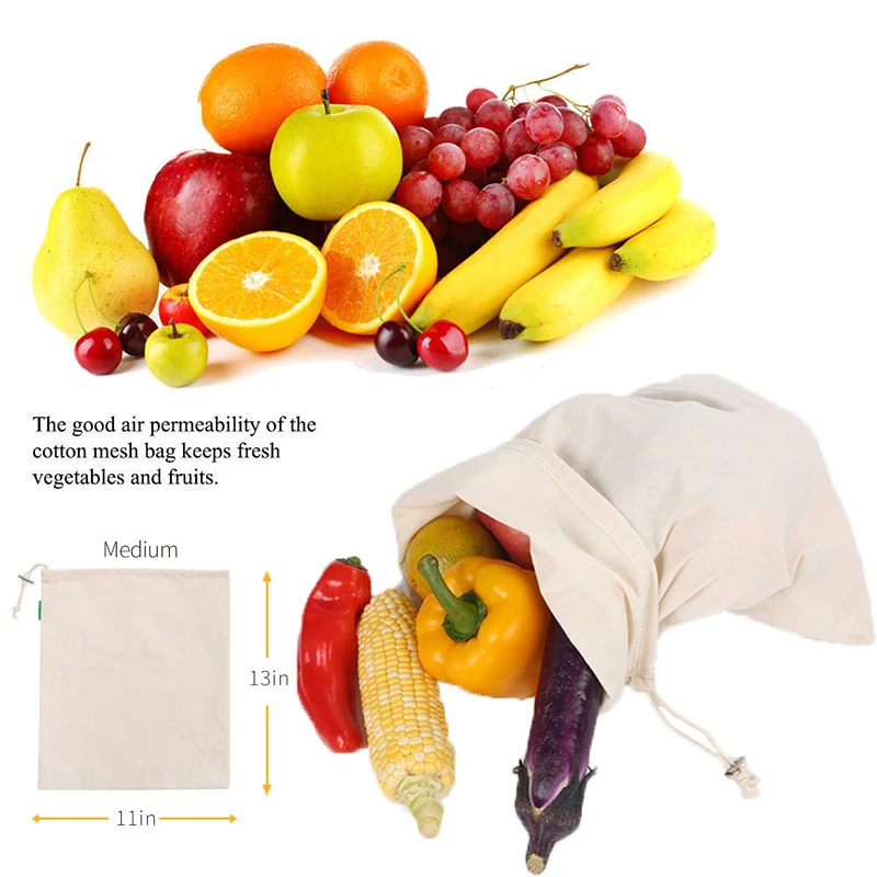 Хорошая воздухопроницаемость сетчатый мешок из хлопка сохраняет свежие овощи и фрукты.