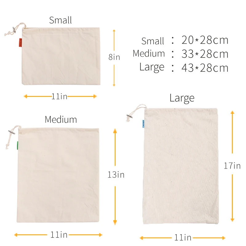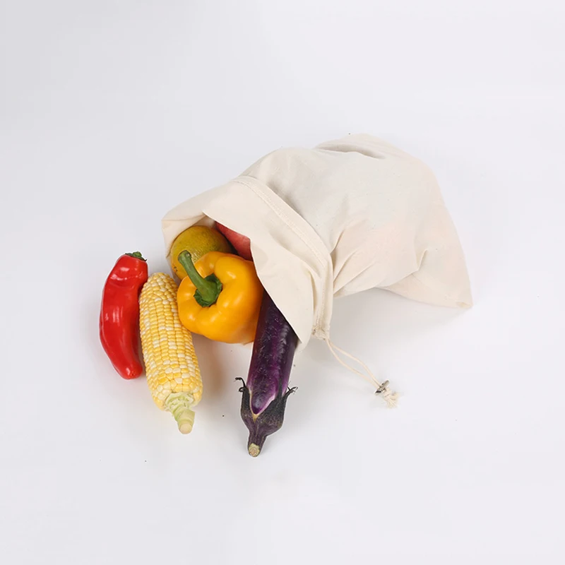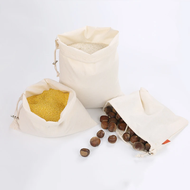 Многоразовые хлопковые сумки на шнурке для овощей, фруктов, риса, хлеба, шоппер, хозяйственная сумка, кухонный Органайзер
