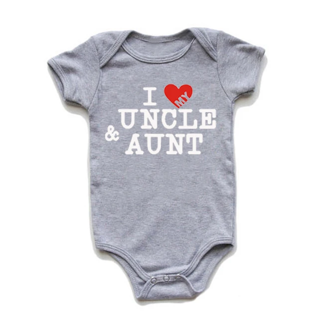 С надписью I Love дядя и тетей с принтом для новорожденных, одежда для маленьких мальчиков и девочек с коротким рукавом О-образным вырезом для детей, начинающих ходить; Сезон лето Детский комбинезончик; Одежда для новорожденных; Боди