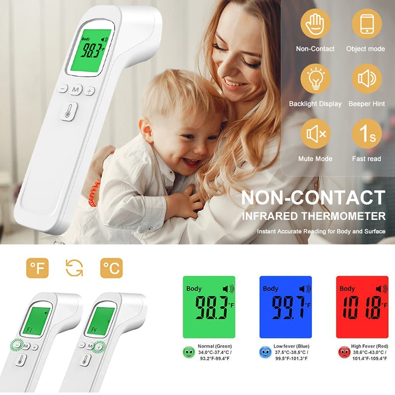 Бесконтактный инфракрасный термометр, цифровой электронный пистолет для измерения температуры лба, тела, температура у детей и взрослых