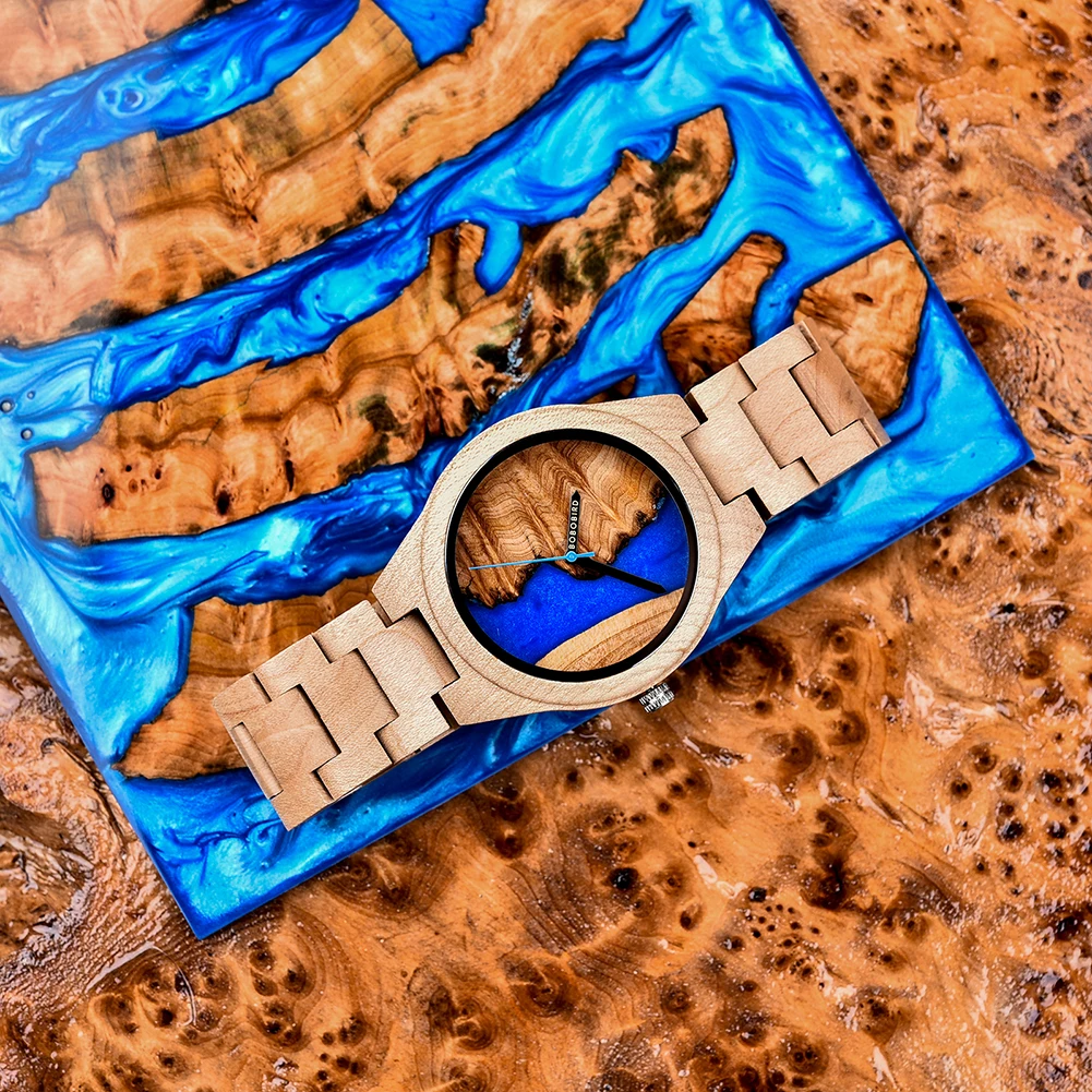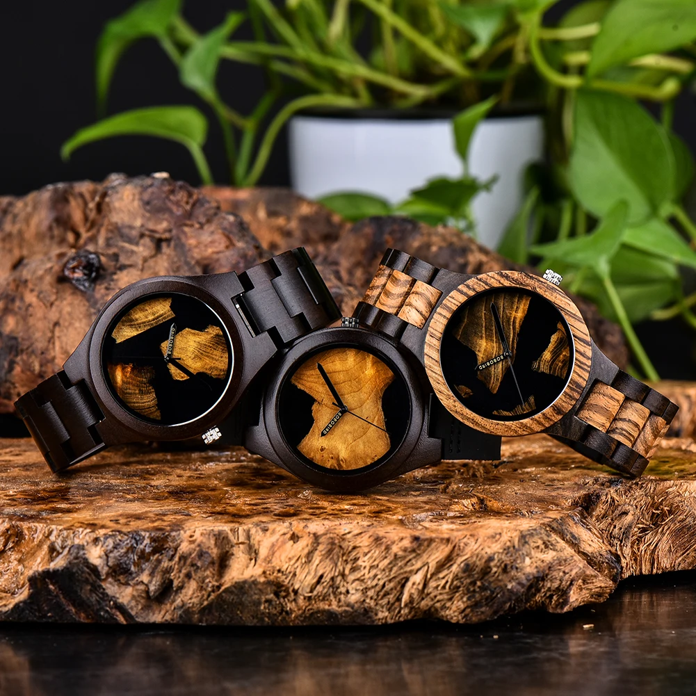 Часы мужские, с деревянным циферблатом, водонепроницаемые, в подарочной коробке