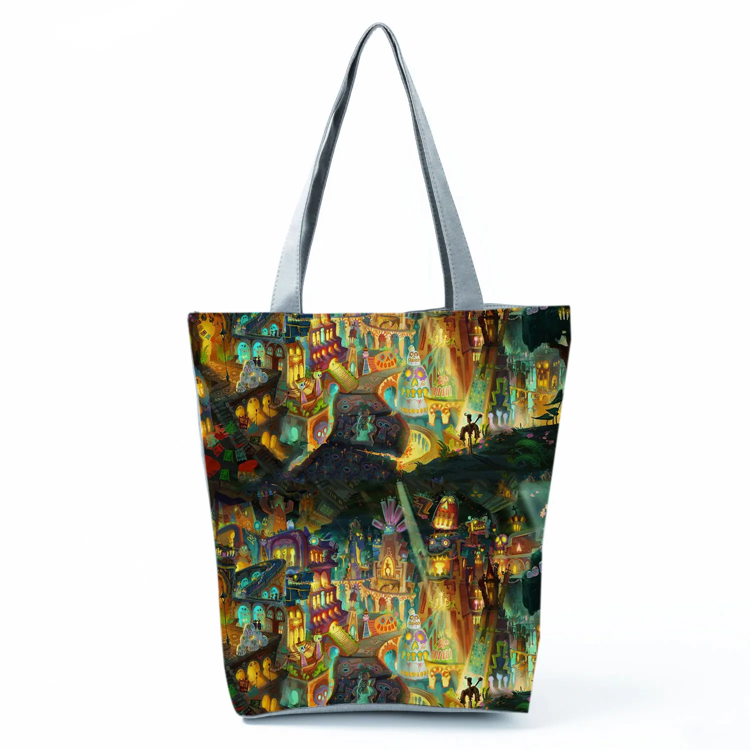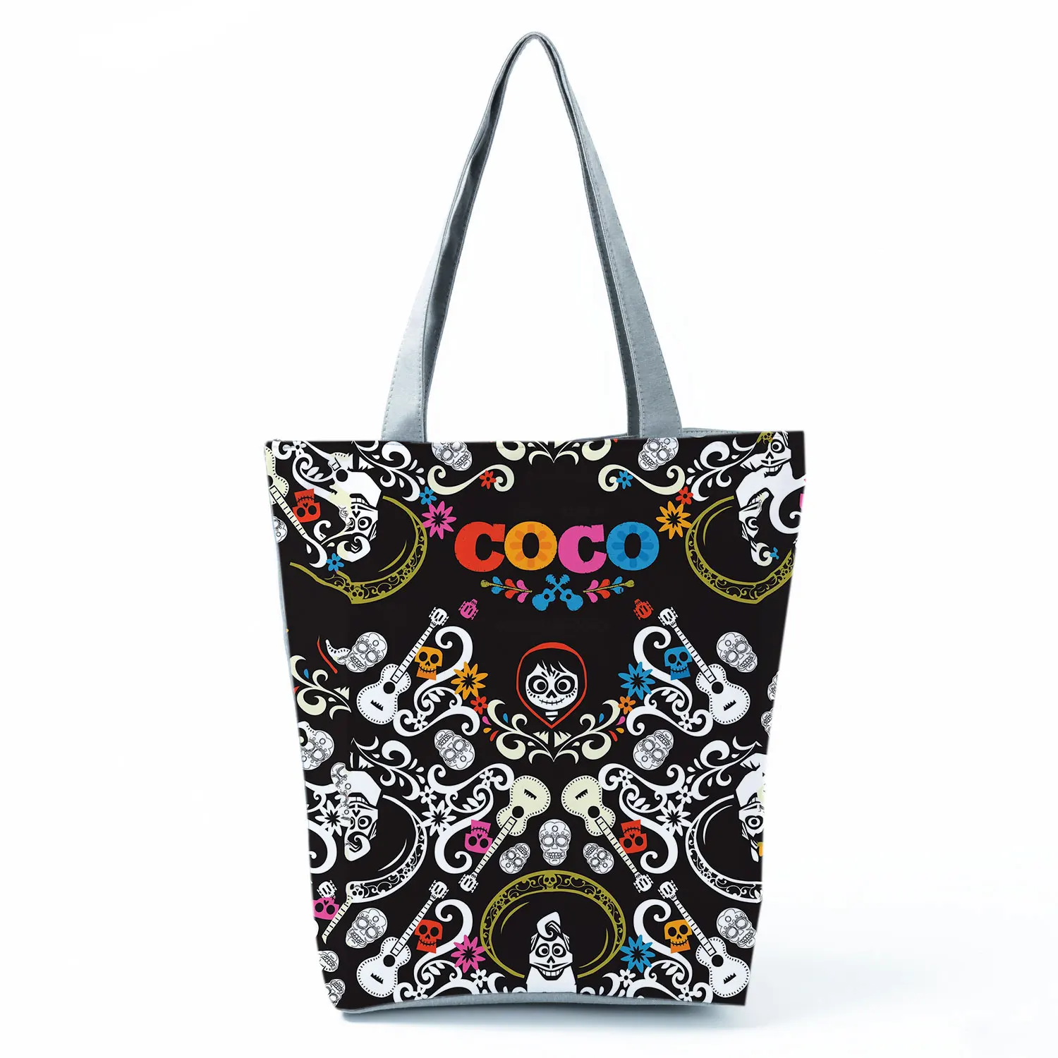 Сумки с принтом Disney Coco на Хэллоуин, Череп, мультяшная Сумка-тоут, крутая повседневная женская сумка через плечо, детская черная вместительная сумка для покупок