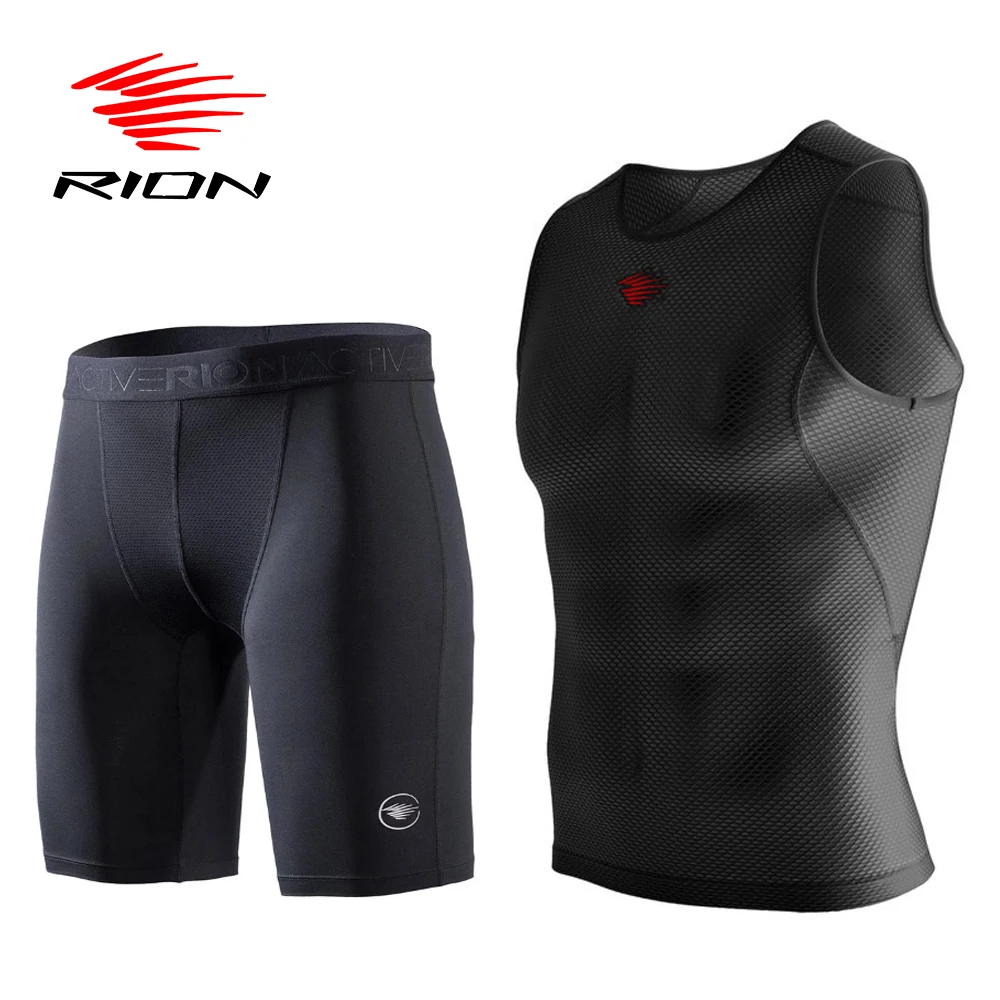 Спортивный костюм RION мужской сетчатый, трикотажный комплект из шорт для бега, тренировок в тренажерном зале, без рукавов