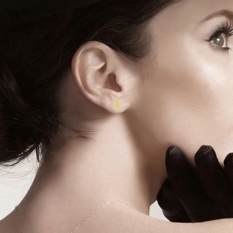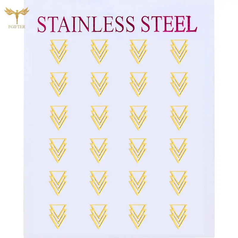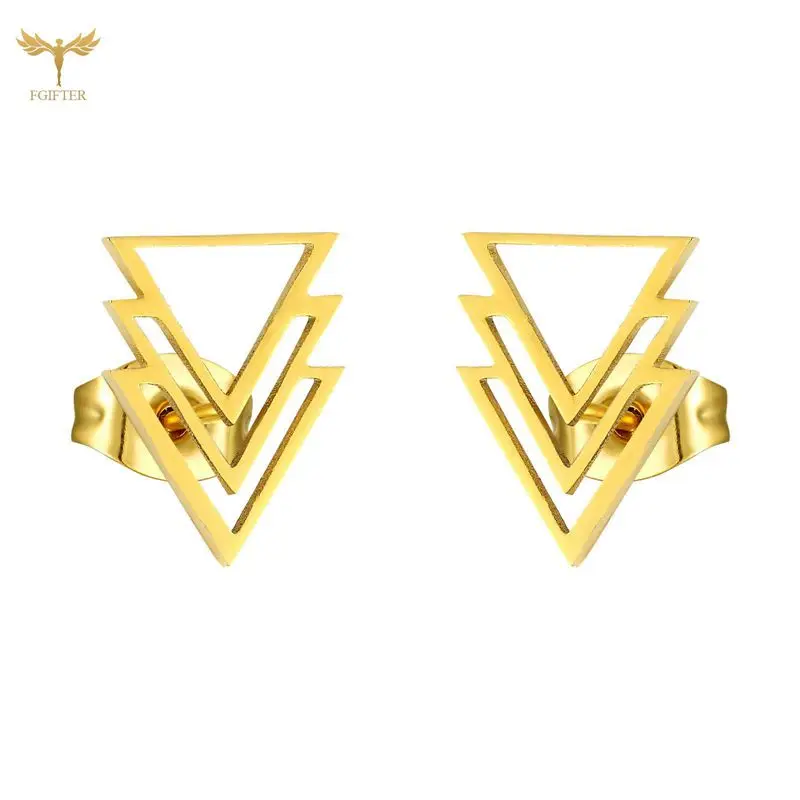 Золотой геометрический Треугольники серьги-гвоздики в виде трех Треугольники s накладывается личность Нержавеющаясталь женские популярные Jewe