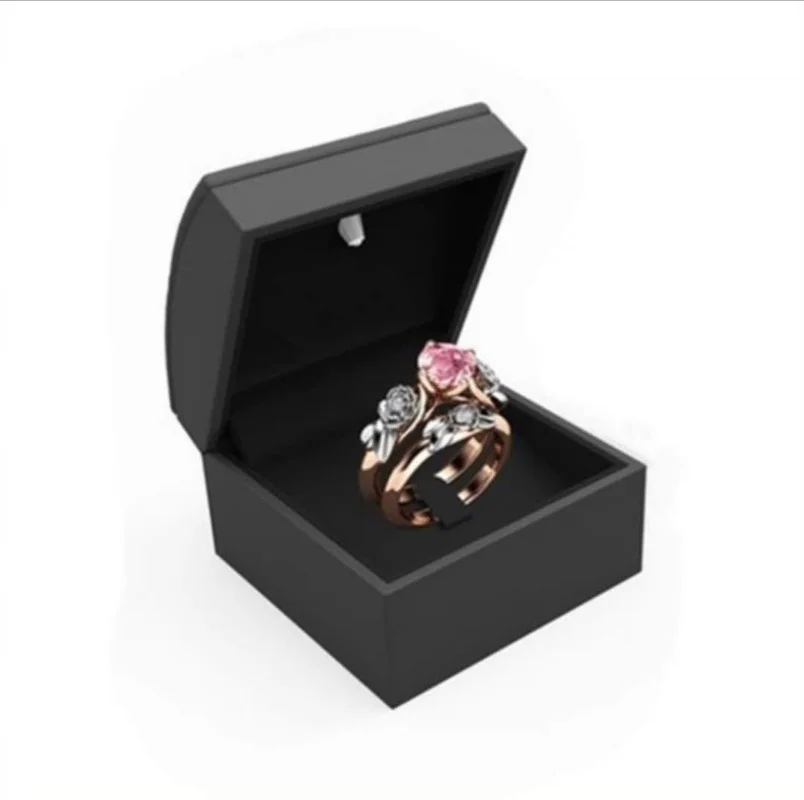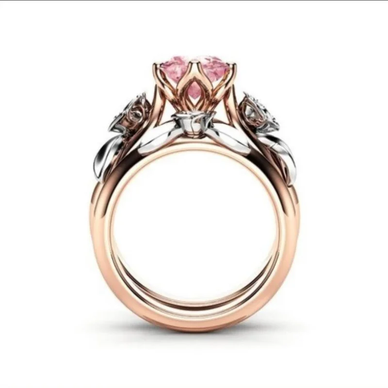 Milangirl 2 шт.компл. женские туфли-лодочки; Цвет РОЗОВЫЙ, с цветочным принтом розы золотого цвета с украшением в виде кристаллов Стразы женское кольцо с цирконом для женщин, ювелирное изделие для помолвки, свадьбы