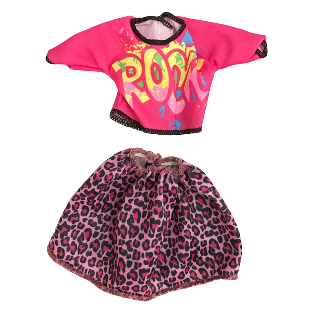 Кукла NK, 1 комплект, модный красный топ с рукавом средней длины, короткая юбка с леопардовым принтом, аксессуары для куклы Барби, повседневный набор, лучшая детская игрушка, подарок 6X