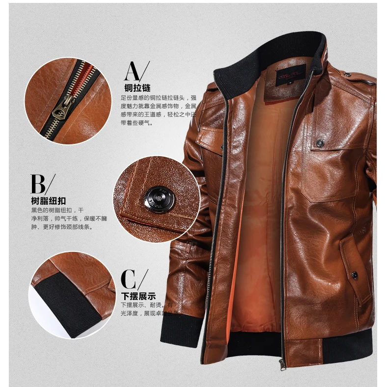 Новинка 2020, мужские кожаные куртки, мотоциклетные куртки с воротн...