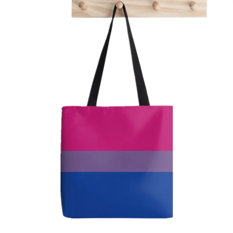 2021 сумка-шоппер бисексуальный флаг полоса печать сумка-тоут для женщин Harajuku сумка для покупок через плечо; Сумка-шоппер леди Сумки-холсты