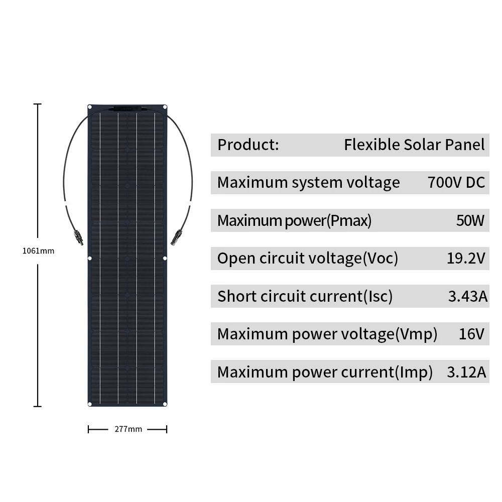 50 ватт 12 в солнечные панели решетки системы наборы гибкий 50 Вт солнечная батарея + 10 А контроллер заряда + Кабельные адаптеры/110 В 220 В инвертор для автомобиля RV Морской лодки прицепа