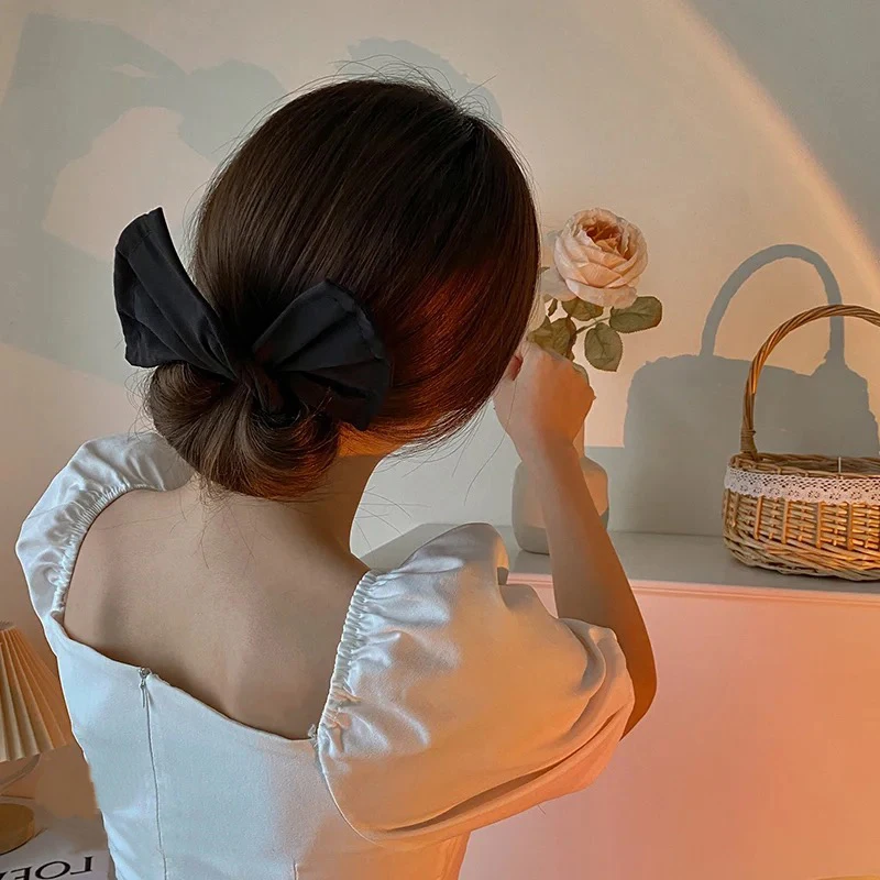 Женская элегантная однотонная повязка на голову с бантиком и длинными ручками