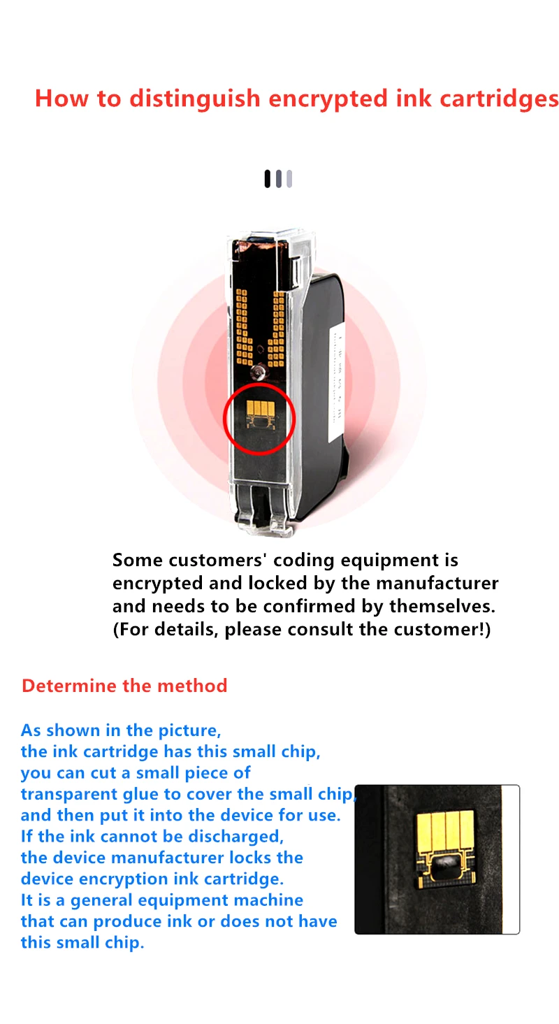 Как показано на рисунке, чернильный картридж имеет этот маленький чип. Вы можете отрезать небольшой кусок прозрачного клея для покрытия маленького чипа. Затем поместите его в принтер для использования. Если чернильный картридж не может быть использован, принтер зашифрован. Если он может печатать нормально или чернильный картридж не имеет маленького чипа на нем, тогда принтер не зашифрован.