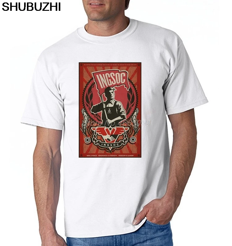 Мужская футболка с принтом, с круглым вырезом, INGSOC 1984, европейские размеры, большая скидка, футболки с коротким рукавом