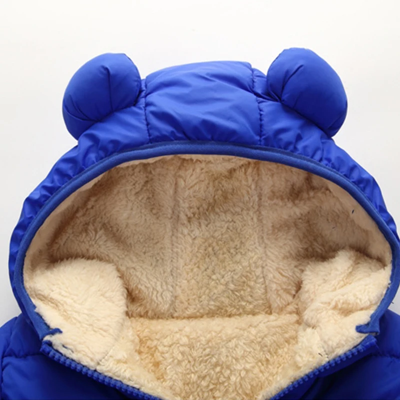 Теплое зимнее пальто с капюшоном и объемными ушками для маленьких м...