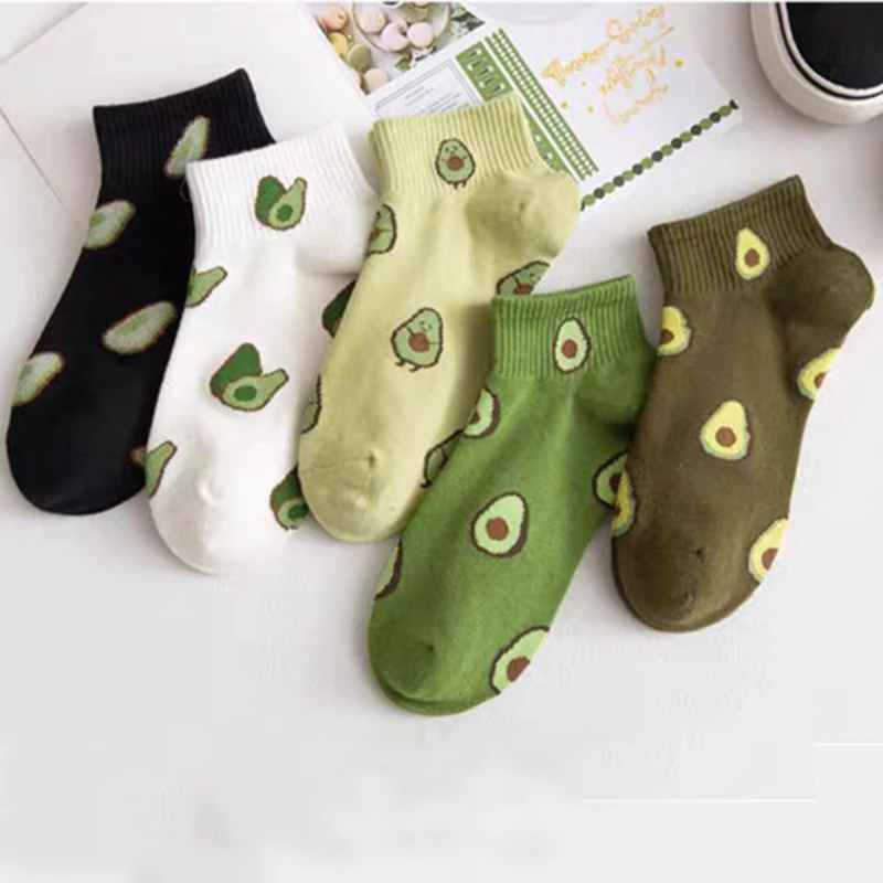 Носки женские хлопковые с вышивкой авокадо, клубники, 1 пара