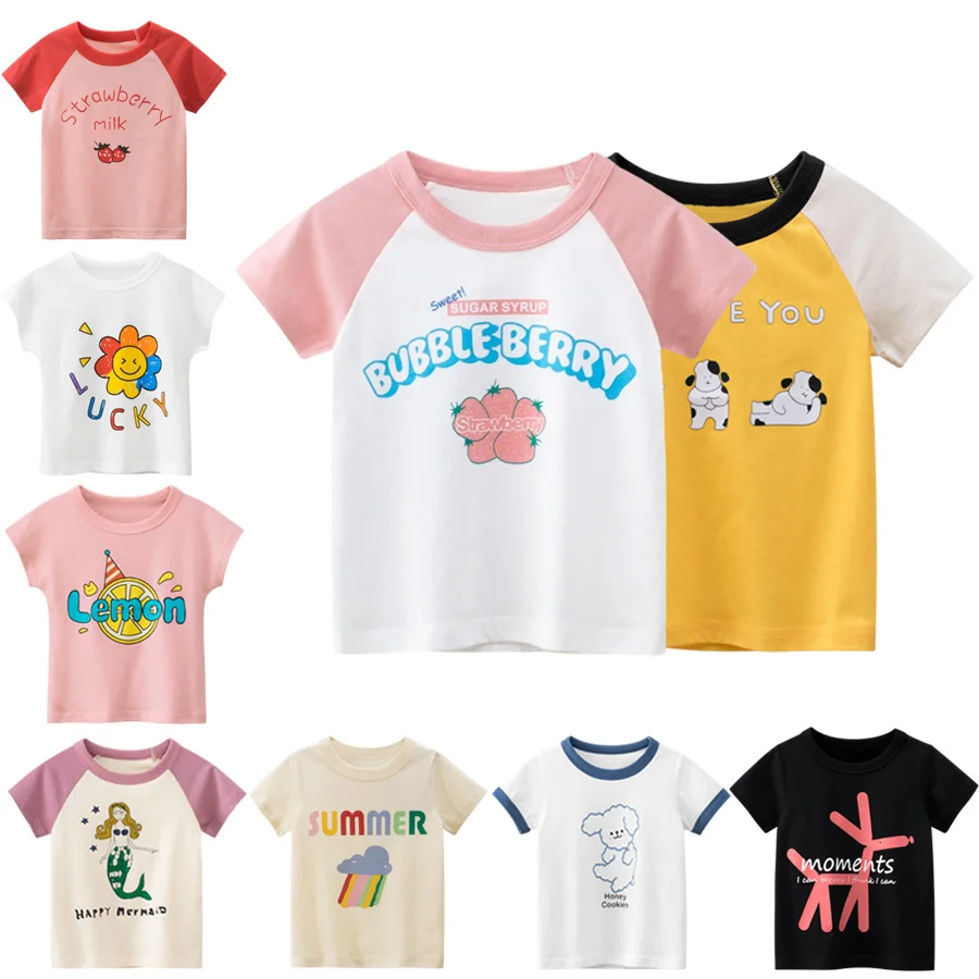 Летняя футболка с изображением животных из мультфильмов, для маленьких детей, для мальчиков и девочек, милые хлопковые топы с коротким рукавом, повседневные футболки для девочек, летняя одежда