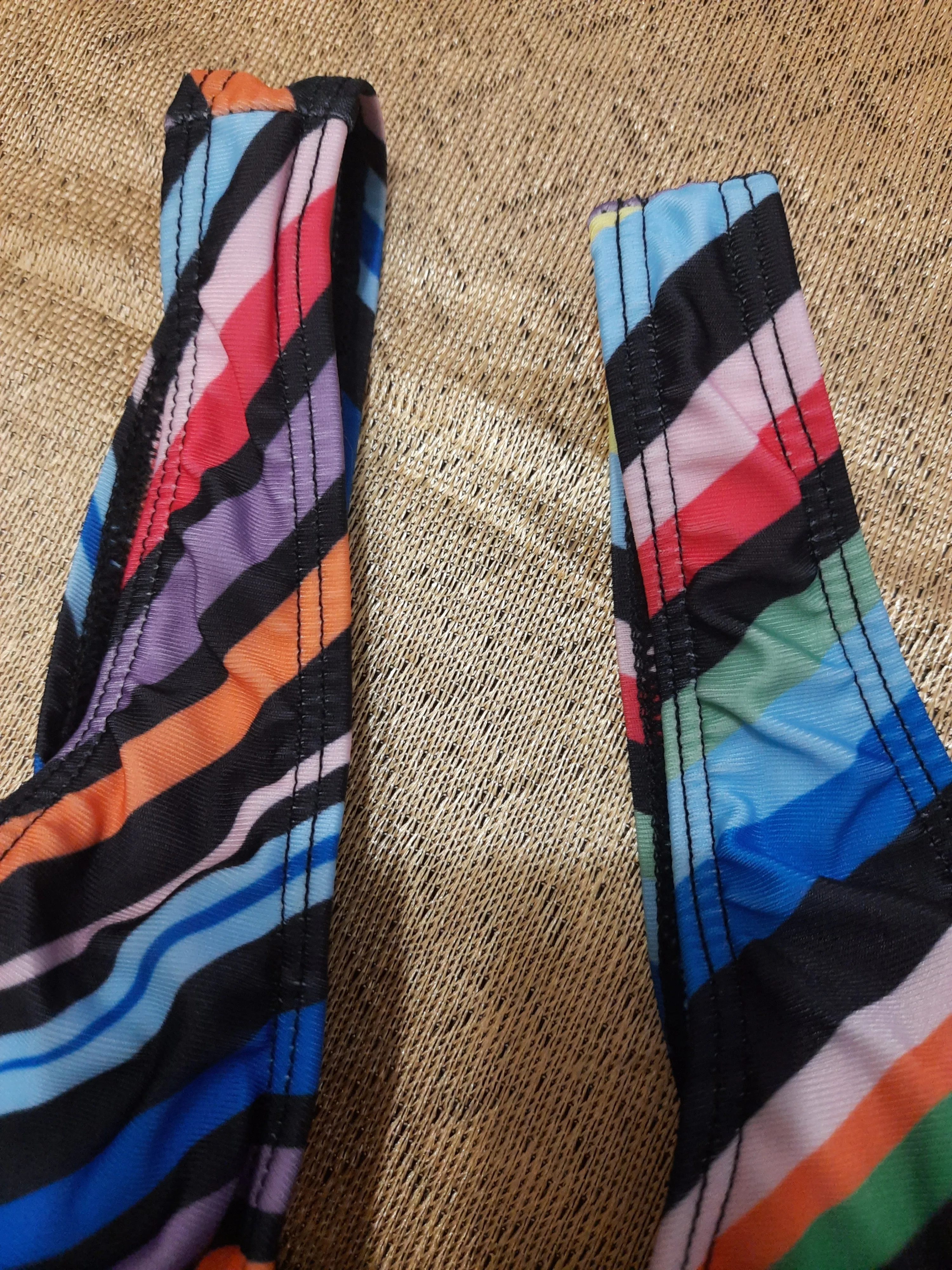 Расцветка яркая, но на этом положительные качества заканчиваются. Ткань тонкая, ничего не утягивает. Очень грубая строчка на самом видном месте - на лямках - смотри фото. Чашечки маленькие, сплющивают грудь. Не рекомендую.