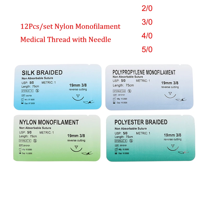 12 шт.; Лидер продаж; Игла шов моноволокна непотерпевшее медицинская нить для наложения швов для медицинский хирургический шов практика комплект 2,03,04,05,0