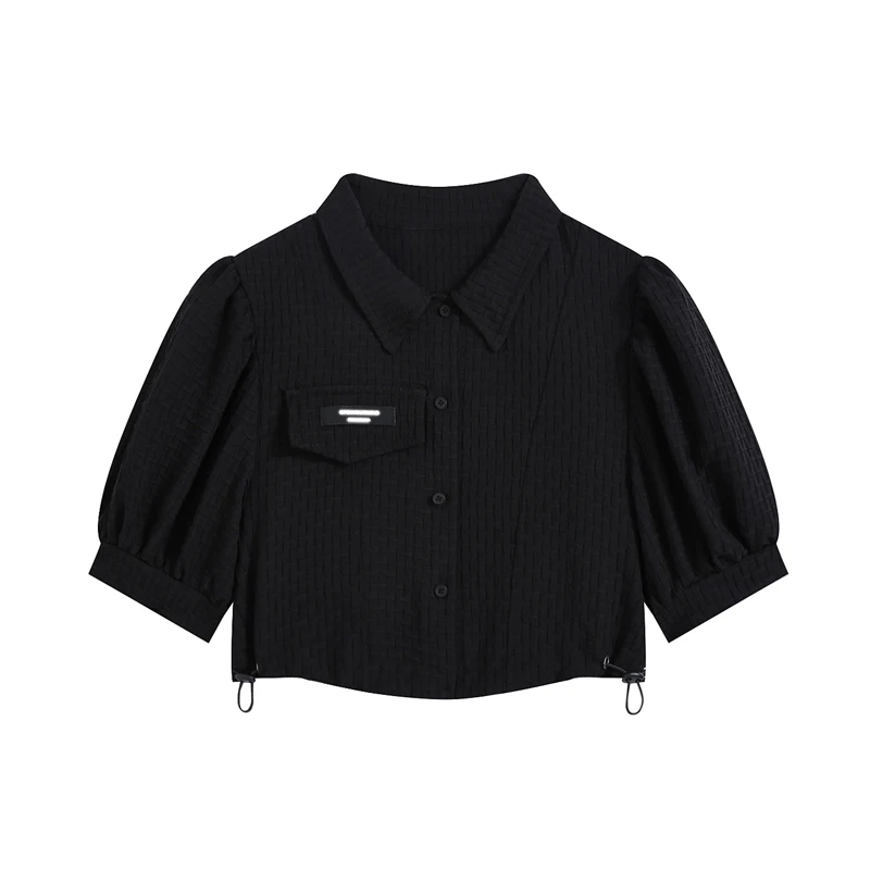 Блузка женская короткая во французском стиле, укороченный топ с отложным воротником и рукавами-фонариками, Облегающая рубашка с открытым пупком и кулиской в стиле High street, лето 2021