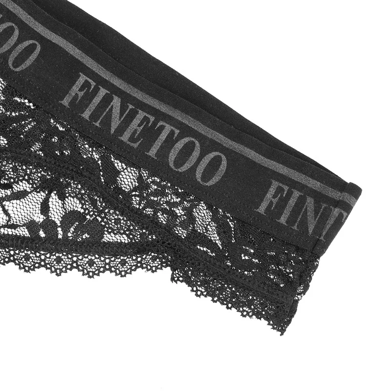 Пикантное кружевное однотонное женское нижнее белье FINETOO в европейском стиле с буквенным принтом, с заниженной талией, модное женское нижнее белье из мягкого хлопка