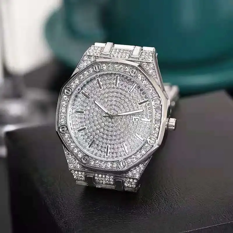 Часы мужские, золотые, со стразами, Мужская хип-хоп мода