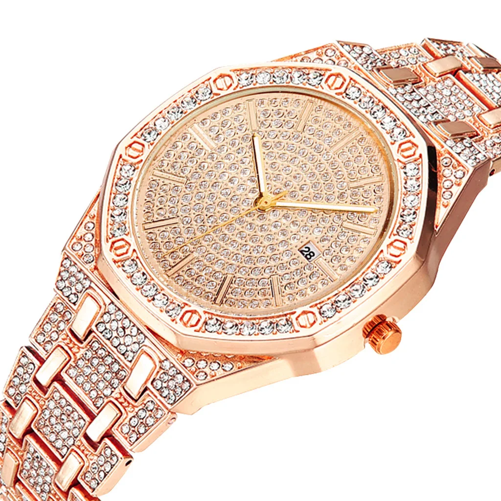 Мужские золотые часы со стразами, кварцевые часы с календарем, Роск...