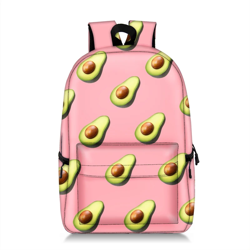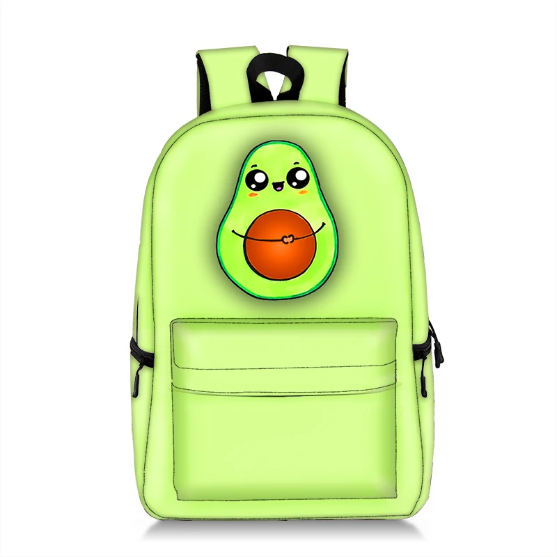 Женский рюкзак с мультипликационным принтом, вместительный дорожный школьный ранец для студентов, портфель с авокадо