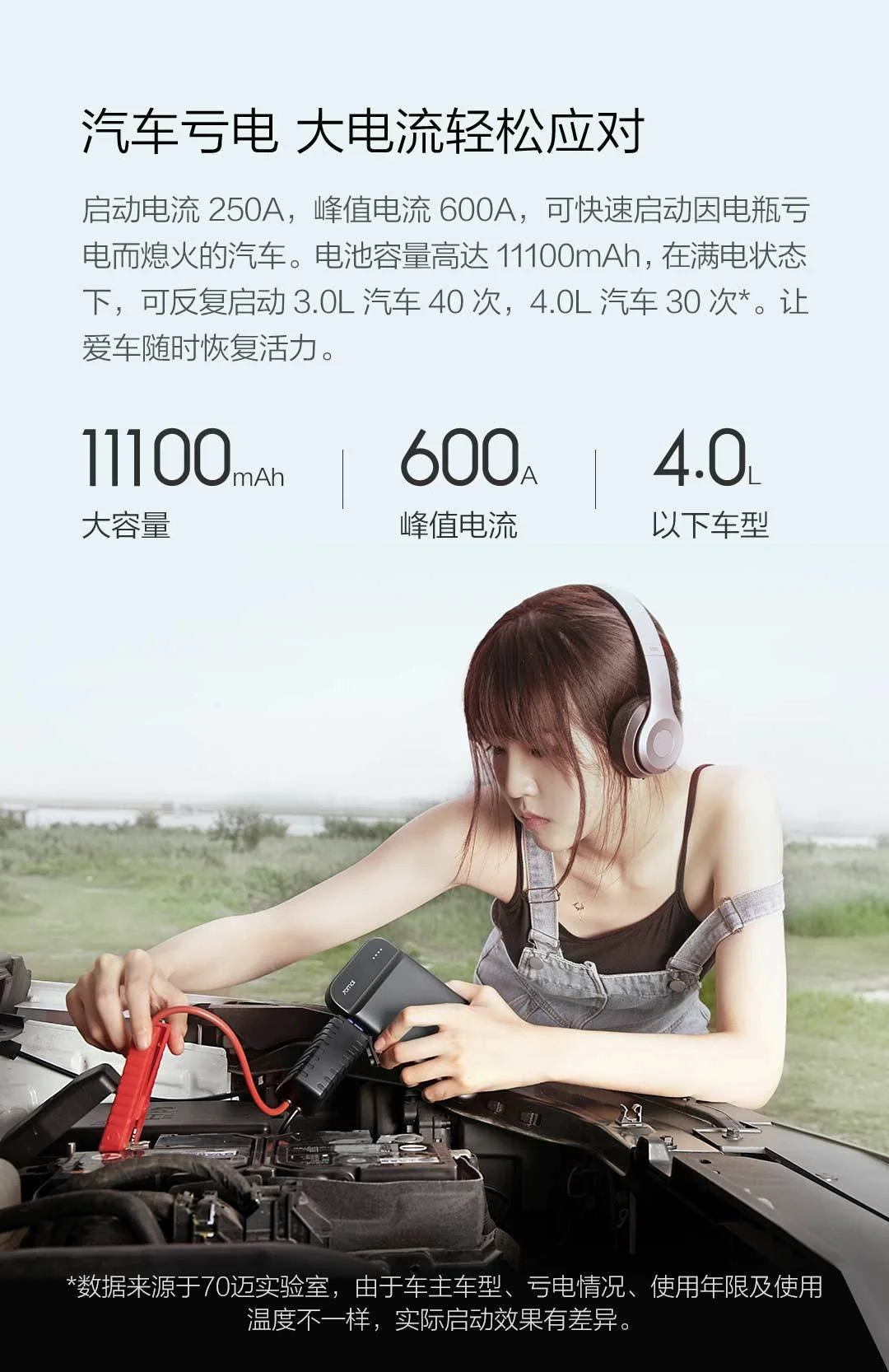 Пусковое устройство 70Mai, автомобильное пусковое устройство, аккумулятор, внешний аккумулятор, пусковое устройство, автомобильный бустер, Автомобильный аварийный бустер, Пусковой двигатель