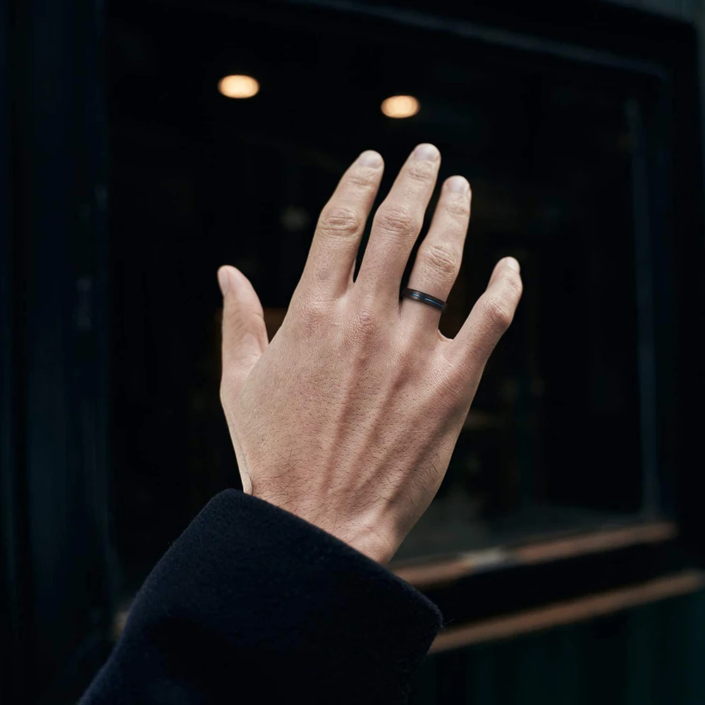 Модное Черное Матовое кольцо 4 мм из нержавеющей стали для женщин и мужчин, тонкое кольцо с синей линией, кольцо обещания, Свадебная и вечерняя бижутерия для женщин