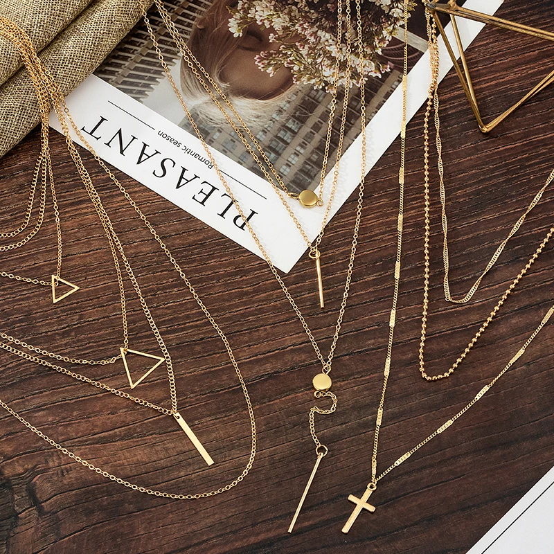 Ожерелье женское многослойное, из Золотого Металла, висячие, геометрической формы, 2021