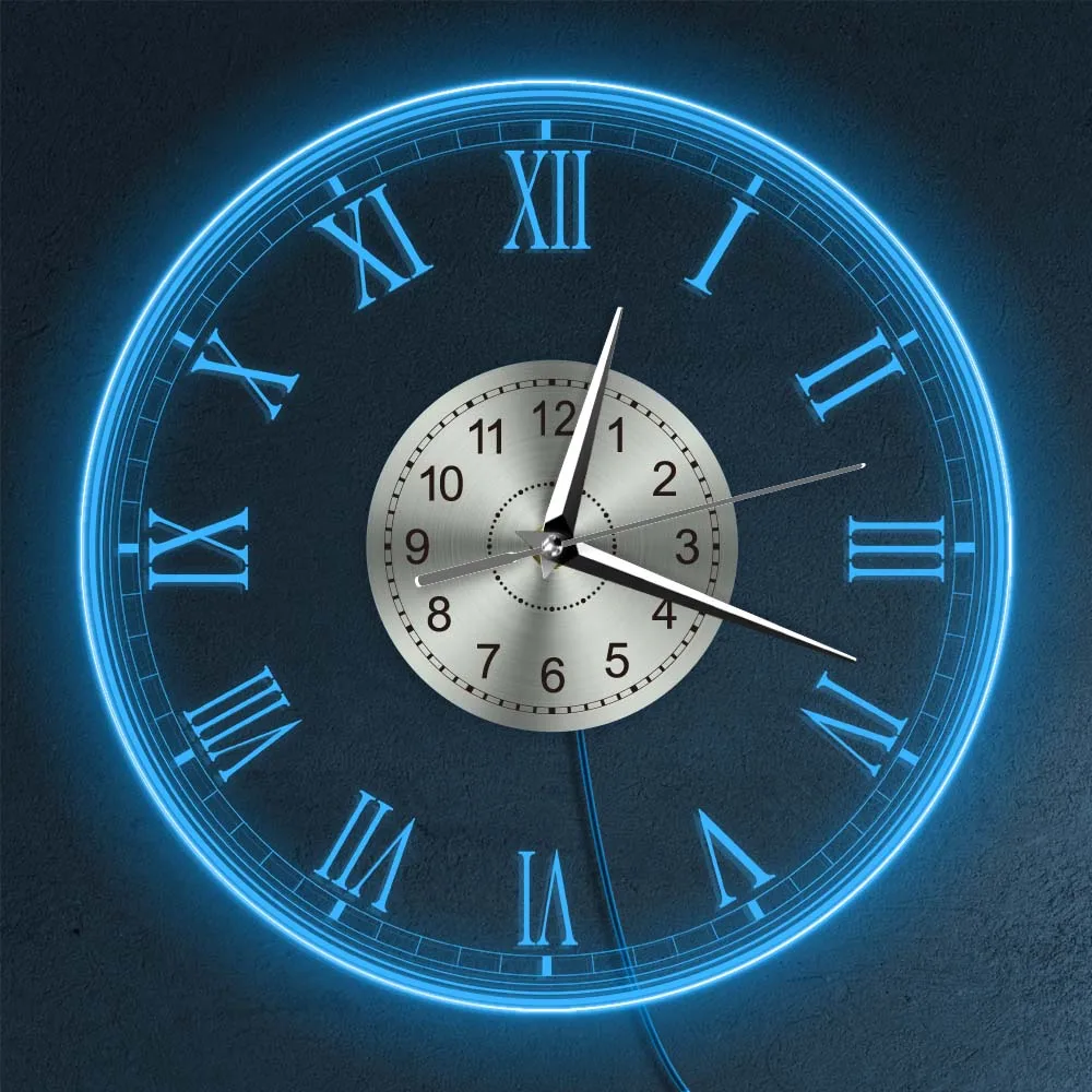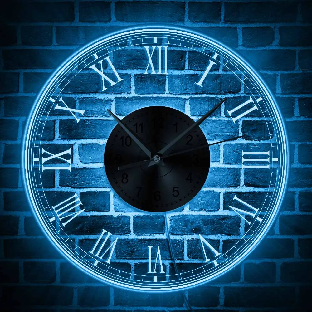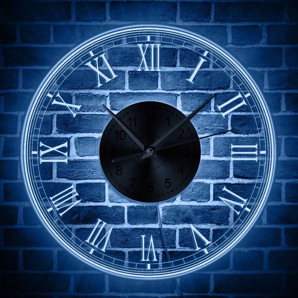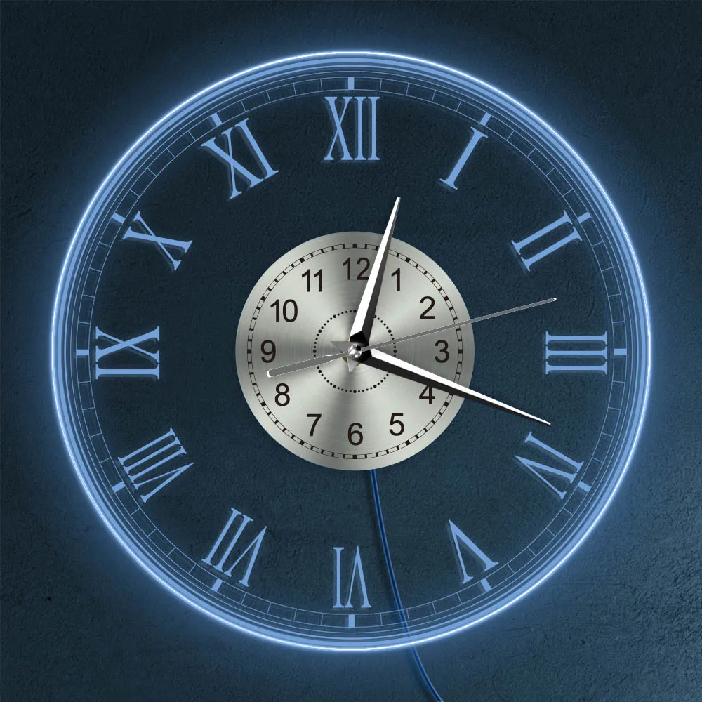 Светящиеся Настенные часы с римскими цифрами, ночсветильник, акриловые светодиодсветодиодный настенные часы в стиле ретро с подсветкой по краям, изысканный интерьер, художественный Декор