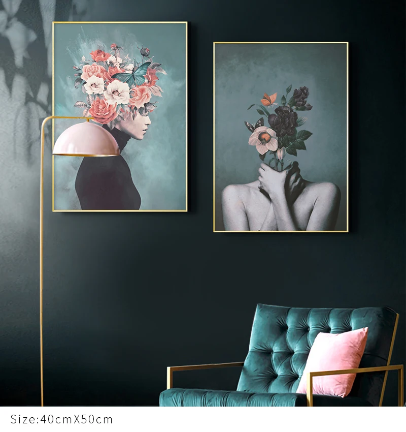 Картина на холсте с изображением женщины, абстрактная картина с цветами, постеры и принты, Настенная картина для гостиной, домашний декор