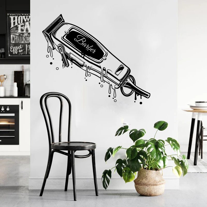 Граффити Парикмахерская Машинка для стрижки волос триммеры капельная Наклейка на стену Стрижка Парикмахерская салон Прическа Наклейка на стену виниловый Декор