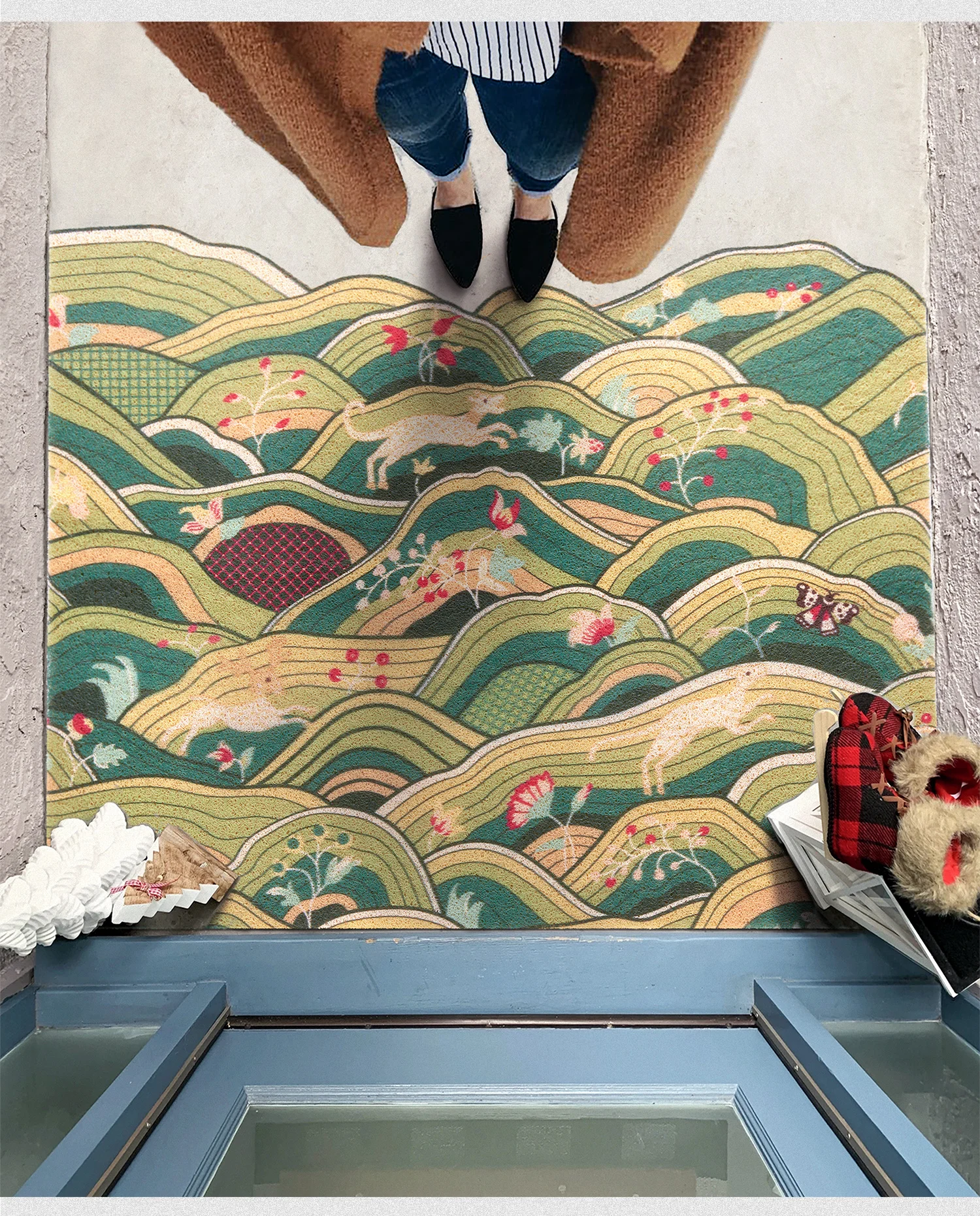 Горный резиновый нескользящий входной коврик для дома и улицы, низкопрофильные напольные коврики, скребок для обуви, приветственный коврик, напольный коврик, коврик для ванной