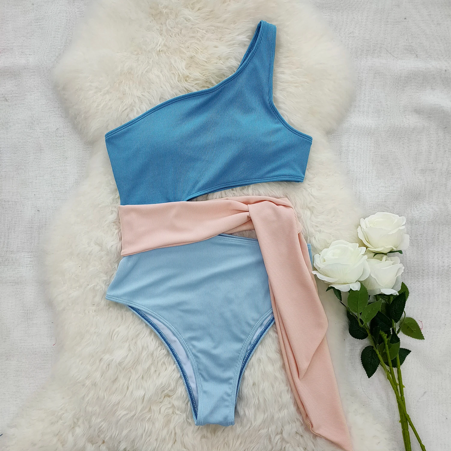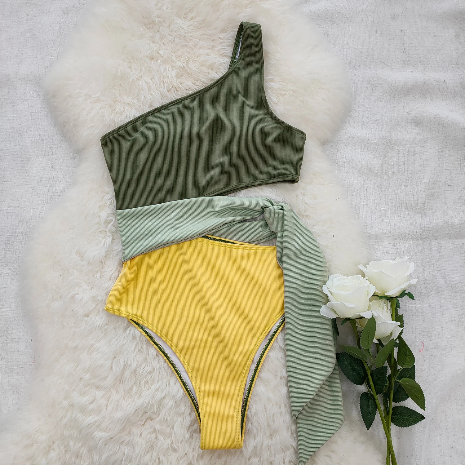 Женский слитный купальник, новинка 2022, купальник на одно плечо, Ж...
