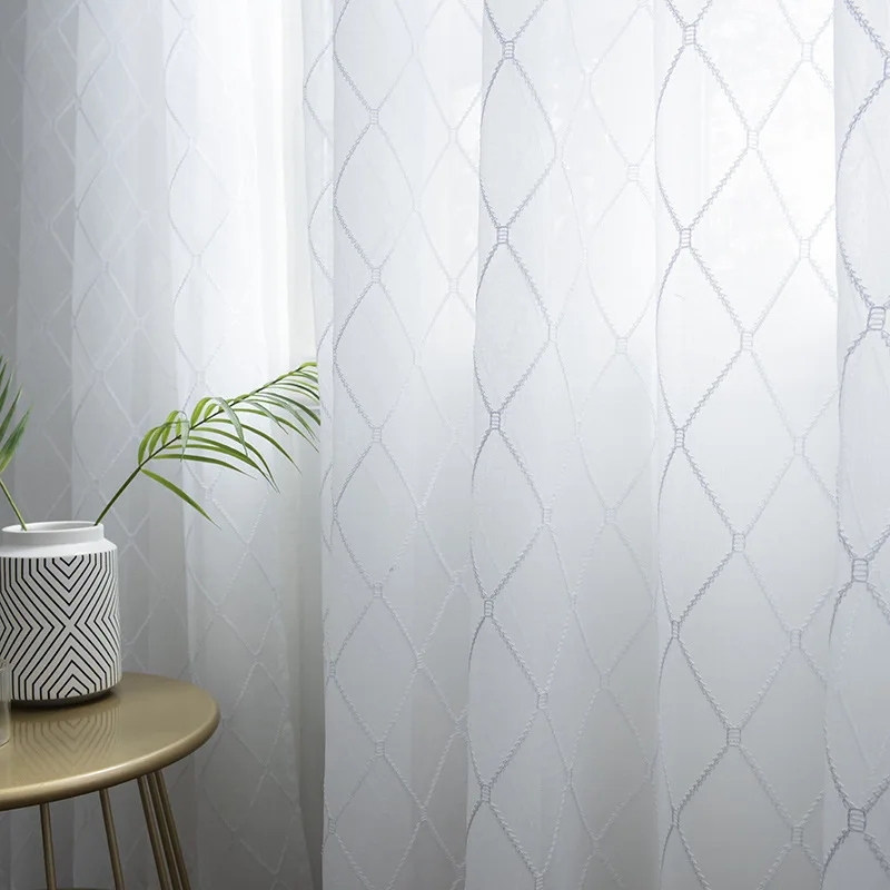 Белые ромбовидные прозрачные шторы для гостиной, спальни, вышитые н...