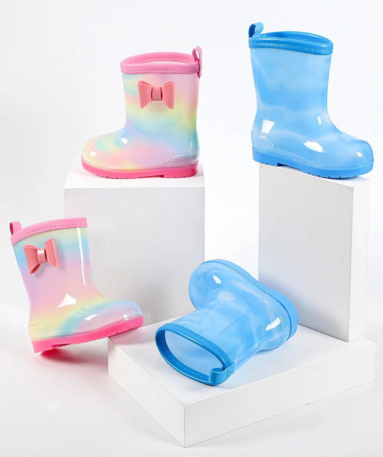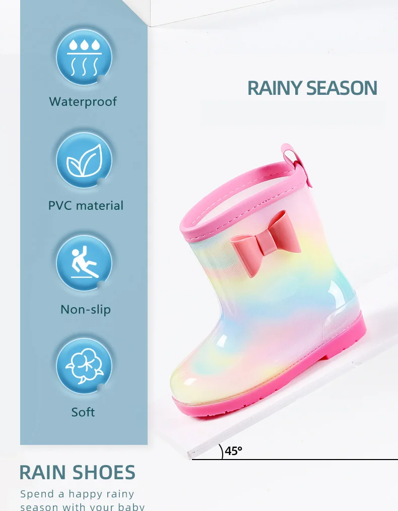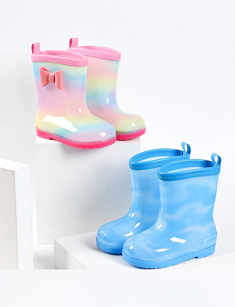 Детские летние водонепроницаемые ботинки с радужным бантом, мягкие Нескользящие ботинки для мальчиков и девочек