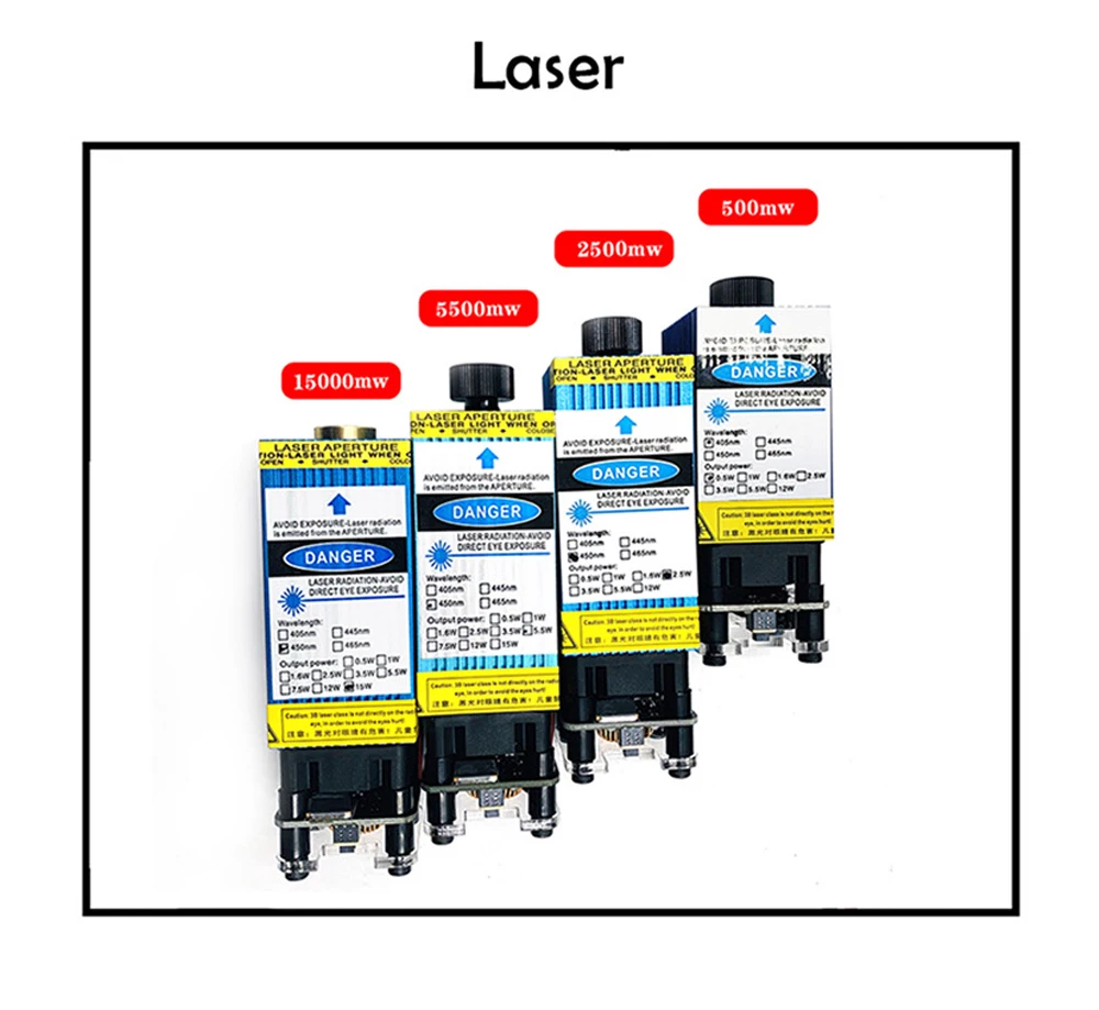Мощность лазера: 500 МВт, 2500 мвт, 3500 МВт, 5550 МВт, 15000 МВт