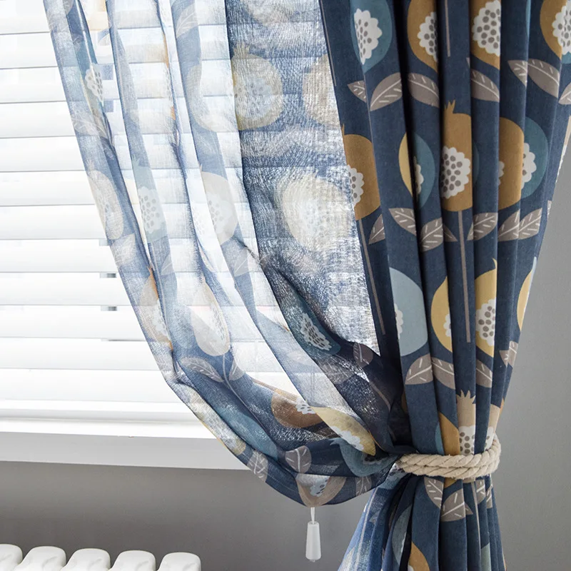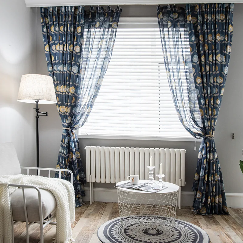 Синие ретро-шторы с пасторальным принтом для гостиной, спальни, тюл...