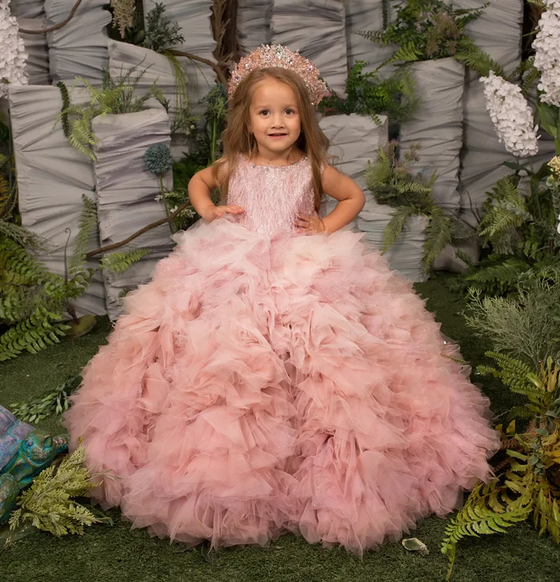 Пышное Платье для девочек, розовые платья из тюля для маленьких дев...
