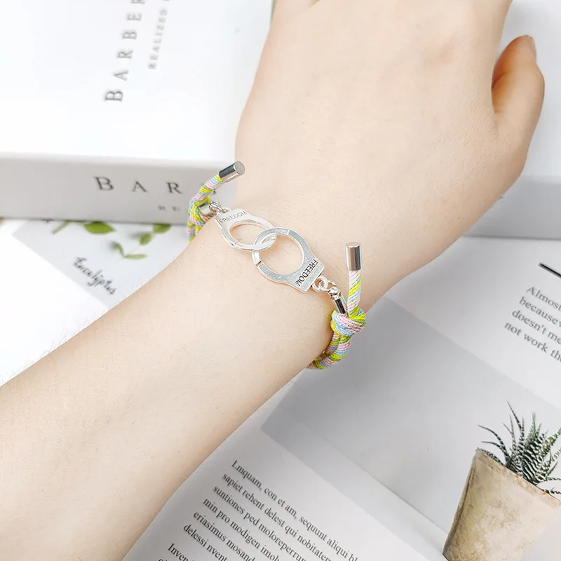 Комплект браслетов с наручниками, 2 шт., регулируемый веревочный бр...
