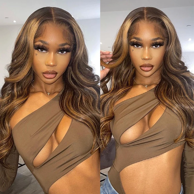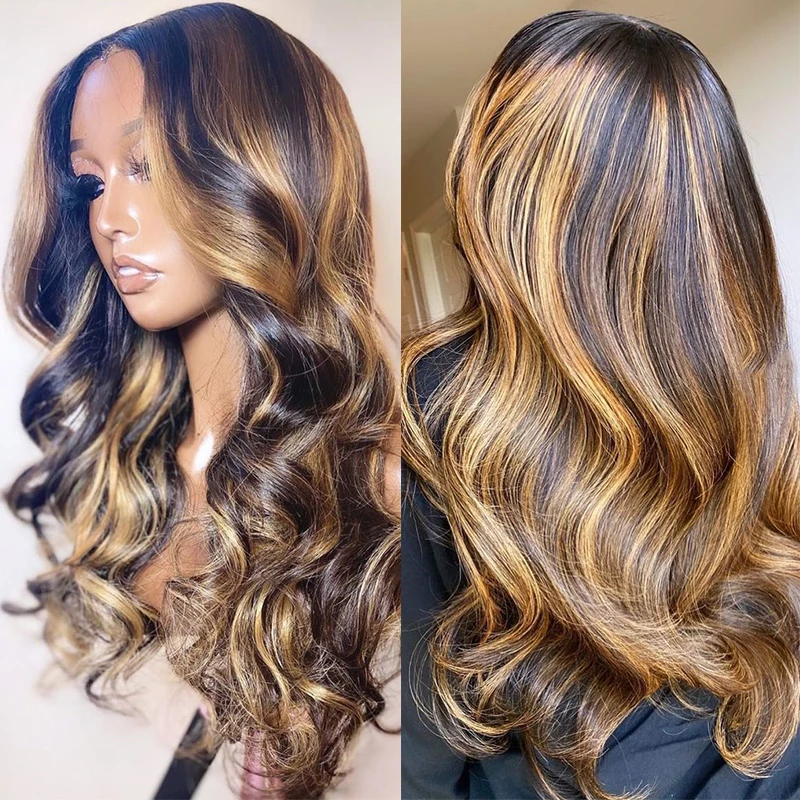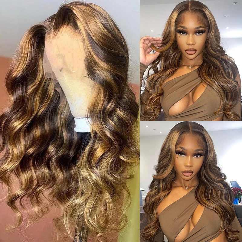 Выделите парик объемной волны парик фронта шнурка человеческих волос 13x4 бразильский Remy 4x4 парик закрытия предварительно выщипанный имбирь коричневый парик фронта шнурка