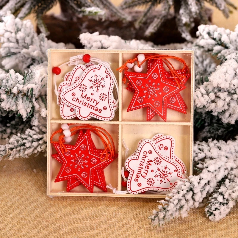 Новый 2022 12 шт. рождественские Снежинки Деревянные Подвески елка украшения дома висит Настенный декор, рождественские украшения для дома